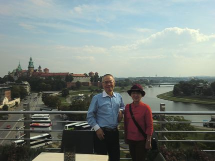 ![]() ![]() 同じく、聖マリア教会の尖塔では毎時間ごとにラッパ手がラッパを吹いて途中で止めます。 お昼はヴァヴェル城とヴィスワ川を望むレストランで食事です。