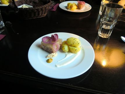 ![]() ![]() ポーランド風「ロールキャベツ」、ベルリンのロールキャベツを思い出してゾッとしたのですが、これは美味。 「豚肉の煮凝り」でしょうか、大変美味しく、量も日本人向きでした。