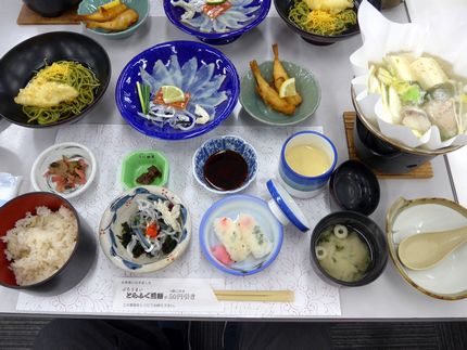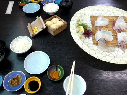 昼食の「グルメ2」は期待の「呼子の烏賊活き造り」です。