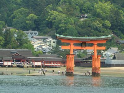 まずは「のぞみ」で広島に、すぐにローカル線に乗り換えて宮島口まで。 宮島では、まずは「厳島神社」に参拝、昔来た時は満潮時で海の上の神社だったのですが今回は干潮時、 かなり印象が違います。