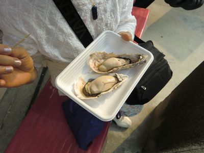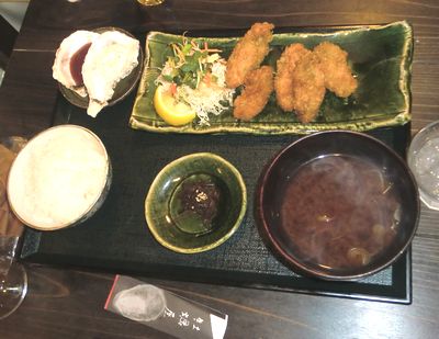 ![]() ![]() 夕食はホテルではなくみやげ物屋のそばの「牡蠣専門店」で「焼き牡蠣と牡蠣フライ」です。
