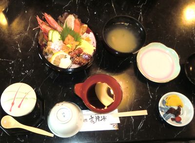 ここでの昼食は「海鮮陶板焼き」と「海鮮蒸し御膳」、素材は同じ海鮮で、焼くか蒸すかの違いでした。