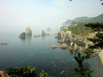 ![]() ![]() 記念館の後は「青海島」へ渡り、「筍岩」を見ながらちょっとしたウオーキング。 青海島を後に萩の町へ、萩といえば「松下村塾」、ここも昔訪れたことはあるのですが周りは すっかりきれいになって、昔を思い出すことはできませんでした。