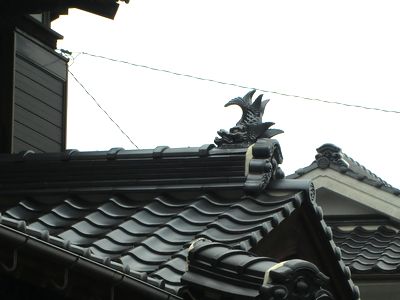 普通の屋根瓦と違って表面には厚く釉薬が塗られており、つやつや光り、鬼がわらの部分には