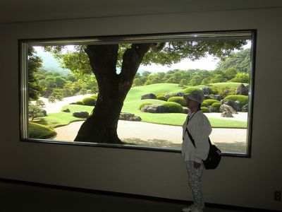 期待はずれの出雲を後に次の「足立美術館」に向かいます。 美術館の中の茶室は、「掛け軸」に見立てた窓から見える庭園も良いし、小豆と和三盆しか使わない「日の出前」も お抹茶に合っており、とても上品な味でした。