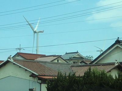 ツアー最後の4日目、まずは鳥取の砂丘に向かうバスからは何台もの風力発電の風車が見えます。