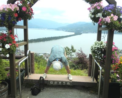 「元伊勢 籠神社」の8の字くぐりで健康を願ったのち、ケーブルカーで笠松展望台に登りお約束の「天橋立股のぞき」