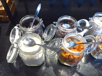 ホテル朝食のヨーグルトに入れる果物の中にデーツがありました。