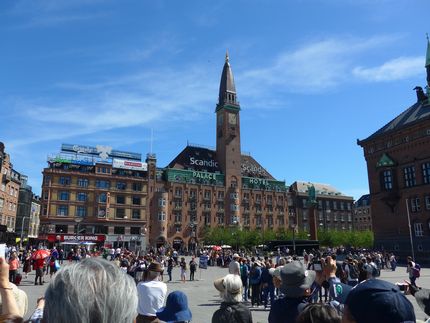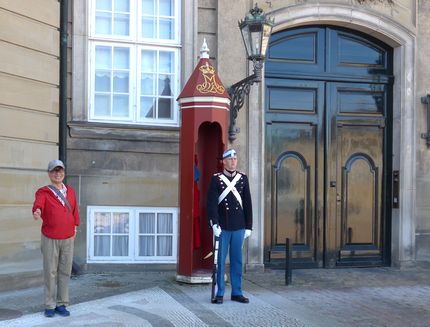 部屋の窓からはホエ・ターストラップ駅が見えます。 コペンの中心部からはかなり離れた、郊外の静かな駅でした。 (2日目)コペンハーゲン半日観光ーリーガルプリンセス乗船ー出発![]() ![]() 翌日はバスでコペンの中心部へ半日観光、アマリエンボー宮殿の衛兵を見たり市庁舎広場を見学。