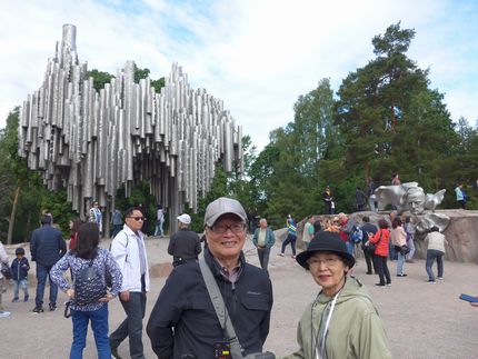 やけに天井の高い市庁舎の中を巡って、ノーベル賞受賞会場やパーティ会場を見学。 ノーベル賞受賞者が必ず買うというチョコレートは高価なので、偽物も合わせて購入。 (5日目)ヘルシンキ![]() ![]() 今日はフィンランドのヘルシンキ入港が10時のため朝食後の運動にズンバダンス。 一汗かいた後はバスでシベリウス公園に。