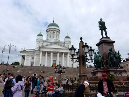 半地下の珍しい「岩の教会」に、ニュージーランドでは「紙の教会」にも行きました。 ヘルシンキ大聖堂は観光客いっぱいで腰を下ろす場所がありません。