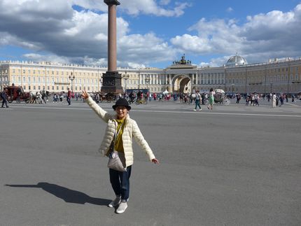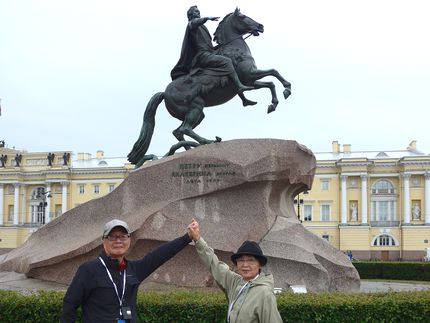 乗船初日、ひょんなことからC旅行社の添乗員Mさんと知り合いました。 (6日目)サンクトペテルブルグ![]() ![]() 12年前に来たロシアのサンクトペテルブルグに入港、聖イサク寺院とデカプリスト広場は初めての訪問。 ピョートル大帝像と記念写真。