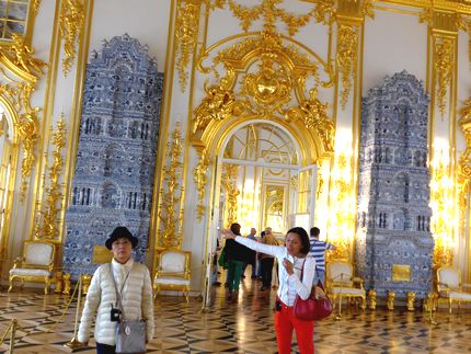 船に戻った夜はロシア民族舞踊ショーを鑑賞。 昔見た「フォークロアショー」のコサックダンスを期待したのですが… (7日目)エカテリーナ宮殿、エルミタージュ美術館![]() ![]() 久しぶりのエカテリーナ宮殿、金ぴかの装飾は色あせていませんでした。