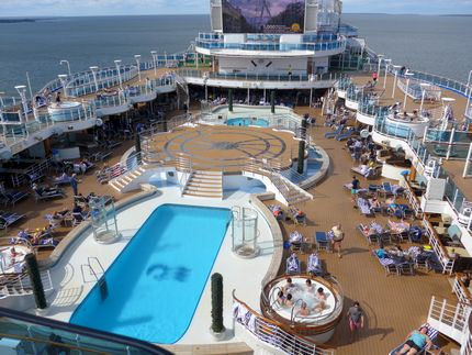 終日航海ですが、気温も低く風も強くプールで泳ぐ人はいません。