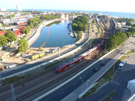 ヴァルネミュンデ港の傍を散策、通りかかりの女性にレストラン街に案内してもらいました。