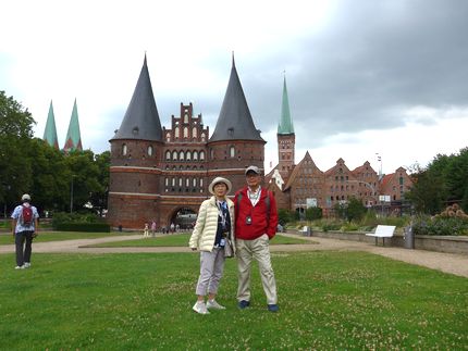ショーの後はダンスコンテストに参加、男女を別々に集め司会者がペアを作ります。 (10日目)リューベック![]() ![]() ドイツのヴァルネミュンデに入港、バスで世界遺産リューベックに。 カッコ良いホルステン門を観光。