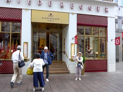 市庁舎前のマジパン菓子で有名な「ニーダエッガー」でお土産買い。