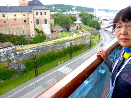 今回のハンバーガは大変美味しく、家内も気に入って2回も食べました。 静かな船内バーでのピンクドリンク、バナナジュースまでサービスしてくれました。 (12日目)オスロ![]() ![]() ノルウエーのオスロ港は素晴らしい城壁のすぐ脇で、ベランダから城壁見物が出来ます。